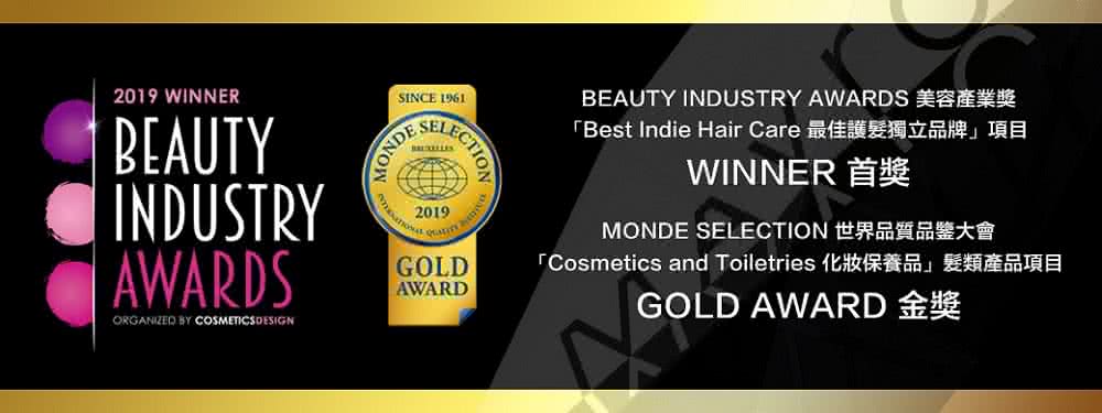 *榮獲 2019BEAUTY INDUSTRY AWARDS 美容產業獎「Best Indie Hair Care 最佳護髮獨立品牌」項目首獎